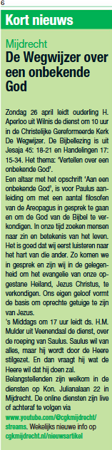 Lees hier het artikel voor de diensten van 26 apr.